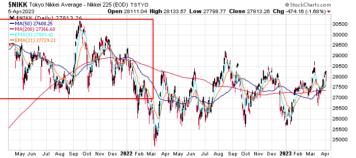 Hong Kong fell much further during Q4 of last year but then rallied huge into its late-January high. It seems to be basing, but until it can break out, at best, it’s neutral.