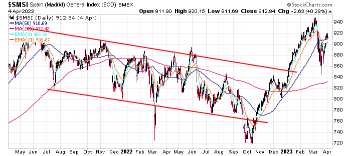 Spain trended lower for about 18 months and then broke out and rallied to a new high this year. There has definitely been a change in character.