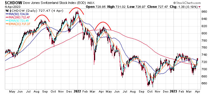Switzerland is basing well below its late-2021/early-2022 top. The country is lagging its peers by a wide margin.