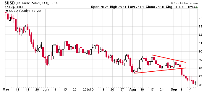 You may not be willing to call yesterday’s action a bottom in the dollar, but it sure was a classic doji reversal candlestick.