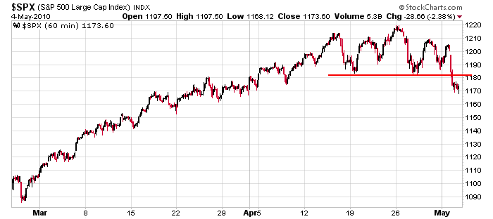 I don’t make predictions, so I’m not going to say whether the market is going to drop 5% or 10% or test the Feb lows or test the March 2009 lows. I’d prefer to simply recognize the market’s direction and make sure I’m on the right side. Right now the right side is the downside. This should not be a surprise given the shorts and reverse ETFs that were added to the trading lists this past weekend.