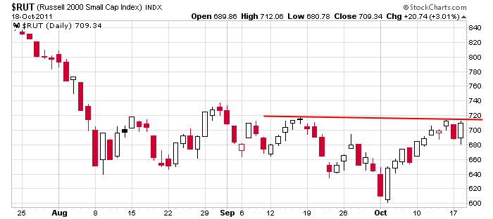 Below are the S&P 500 and Russell 2000. Both are sitting right at resistance. Whether they want the “all clear” sign from Europe or a few more earnings reports to be released here in the States, they are nicely positioned to run.