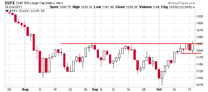 I’ve been saying for almost two weeks my bias is to the upside, and as of now I see no reason to change. News trumps the charts, and since there are no guarantees in Europe, anything can happen, but absent market-moving news, the indexes should breakout from their ranges and attempt to leg up.