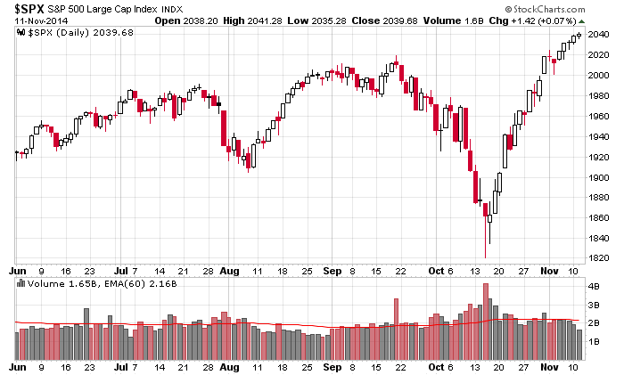 My bias is to the upside, but I’ve hesitate to put new money to work the last week. I’d like to see the market let out some air before beginning an end-of-year run. More after the open.