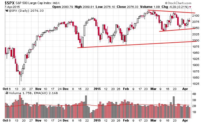 Here is an update of the daily S&P. Rallies get sold, dips get bought. The market has made no net progress since the beginning of December. Pick your spots and don’t overstay your welcome. Yeah we’d like to hold for several weeks or months and nail big moves, but this is the market we have to trade. Lots of little wins add up. Don’t over-analyze or think too much.